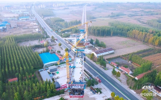 濰宿高鐵諸城濰河特大橋跨S222省道連續梁(李盼峰 攝)